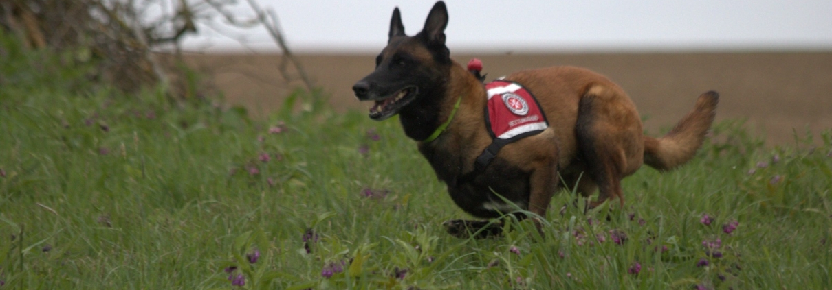 Wir starten in die Mittagspause. Die Flächen und Fährtenprüfungen im Gelände sind beendet. Am Nachmittag geht es los mit den Prüfungen am Trümmergelände. Gleichzeitig müssen sich noch einige Starter:innen bei der Unterordnung bzw. Gewandtheit beweisen. Leider wird uns auch da kein besseres Wetter vergönnt.